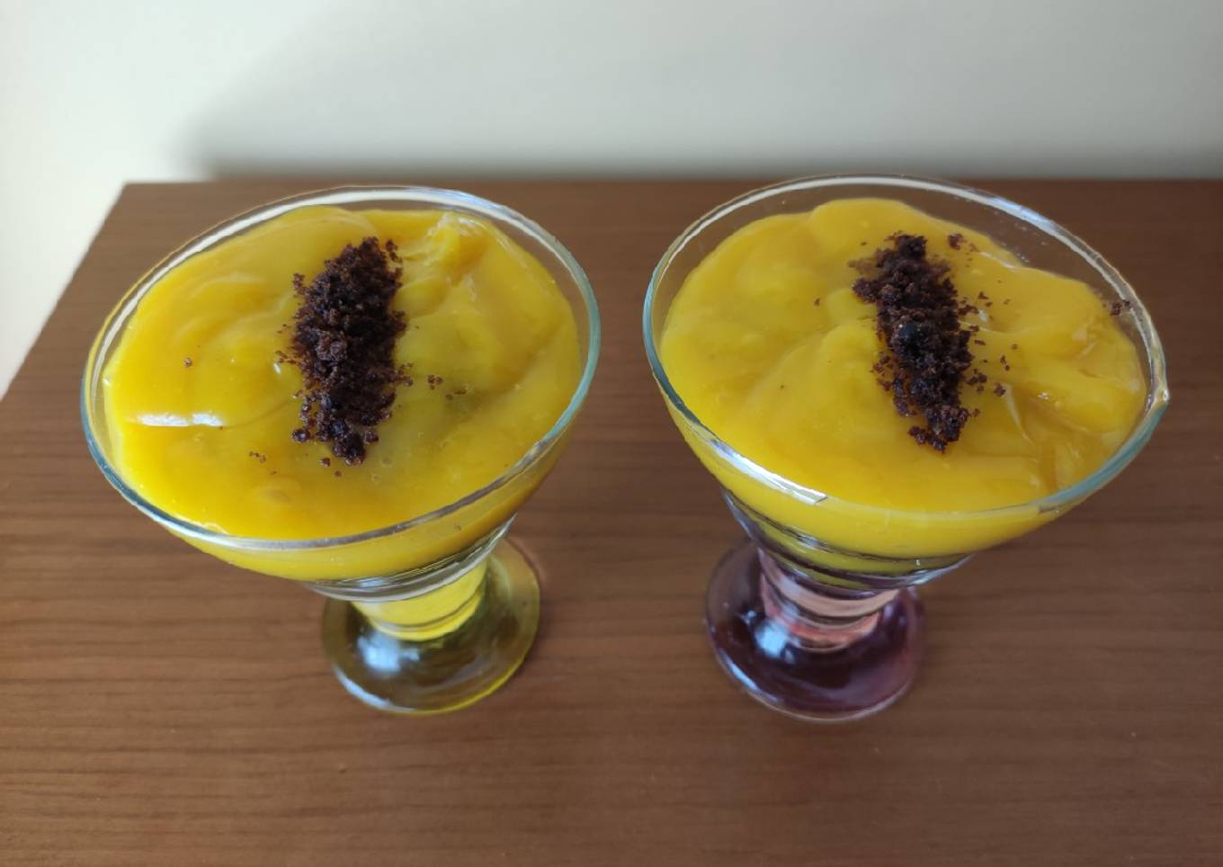 - Después echa una capa de mango triturado, luego otra de galleta/bizcocho y termina con otra de mango