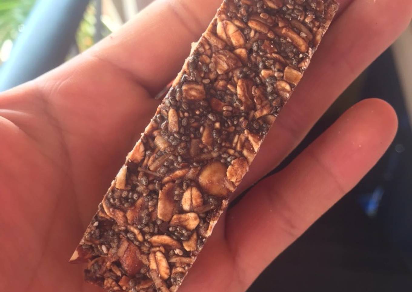 - En un bowl mezclar todos los ingredientes secos (almendra, chía, cacahuate, coco, avena y cocoa) junto con la miel. Incorporar todo muy bien.