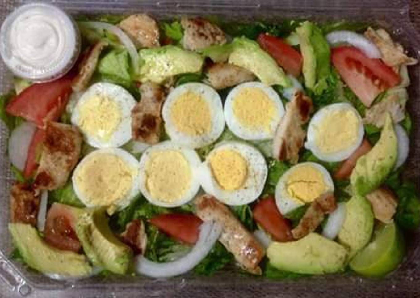 - Agrega el pollo y el huevo cocido. (Si estas a dieta puedes poner solo la parte de la clara del huevo y quitar la yema)