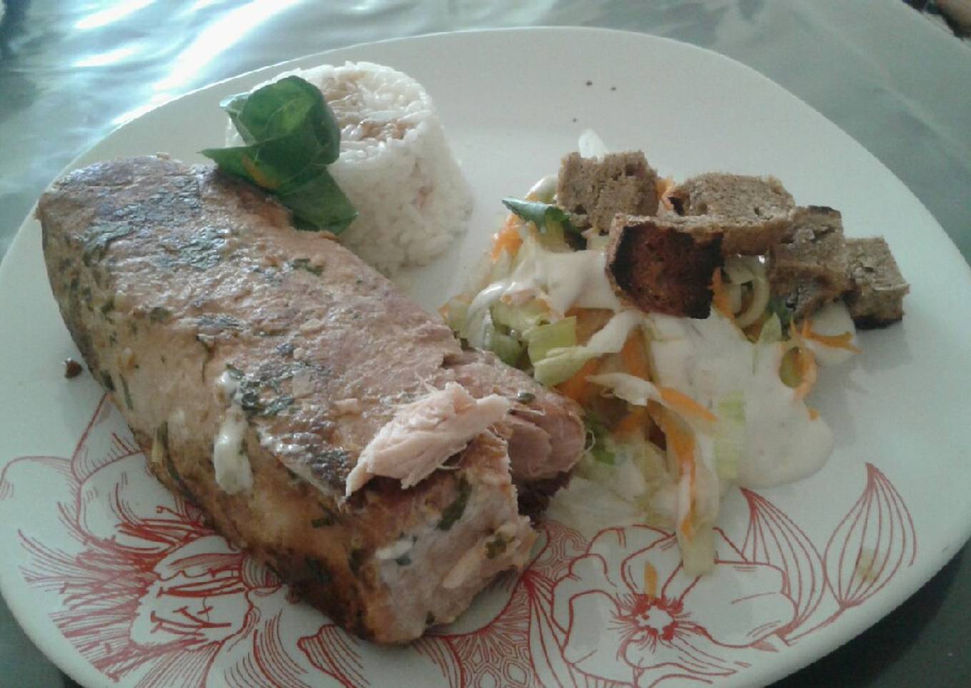 Hello everybody, hope you are having an incredible day today. Today, I will show you a way to make a special dish, Salmón al horno con ensalada de col y arroz blanco. It is one of my favorites food recipes. This time, I will make it a little bit tasty. This is gonna smell and look delicious.